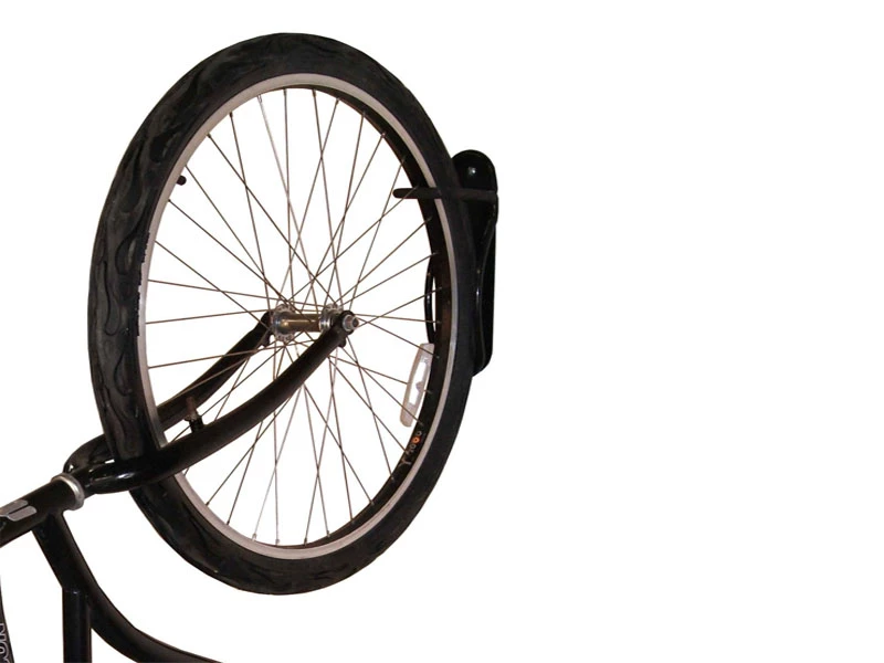 Dette vægophæng er til at hænge cyklen vandret i forhjulet. Den kan bære op til 25 kg, så den kan med andre ord klarer langt de fleste cykler. Der medfølger pluks og skruer med; dog anbefales der andre pluks og skruer hvis den skal hænge på en gipsvæg.