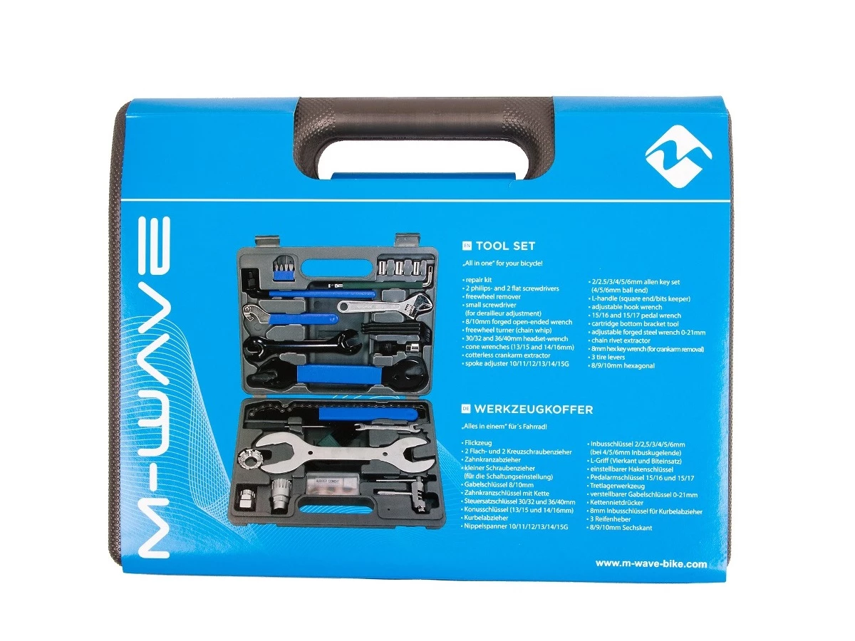 M-Wave Værktøjssæ er et lækkert sæt med kvalitetsværktøj til langt de fleste behov. Den kommer med alt det gængse værktøj til at servicere cykler og bliver leveret i en praktisk kasse, så det fylder mindst muligt.