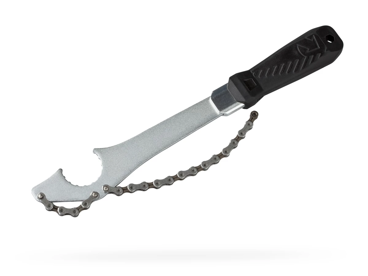 Står du og skal demontere kassetten bag på din cykel, er kædepisken fra PRO et musthave for dig. Med aftrækkeren kan du tage kassetten af, på korrekt og forsvarlig vis, så der ikke ydes skade på hverken cykel eller kassette. Kædepisken fra PRO bruges til effektivt at holde kassetten fast, så den ikke roterer, når selve låseringen på kassetten skal løsnes.