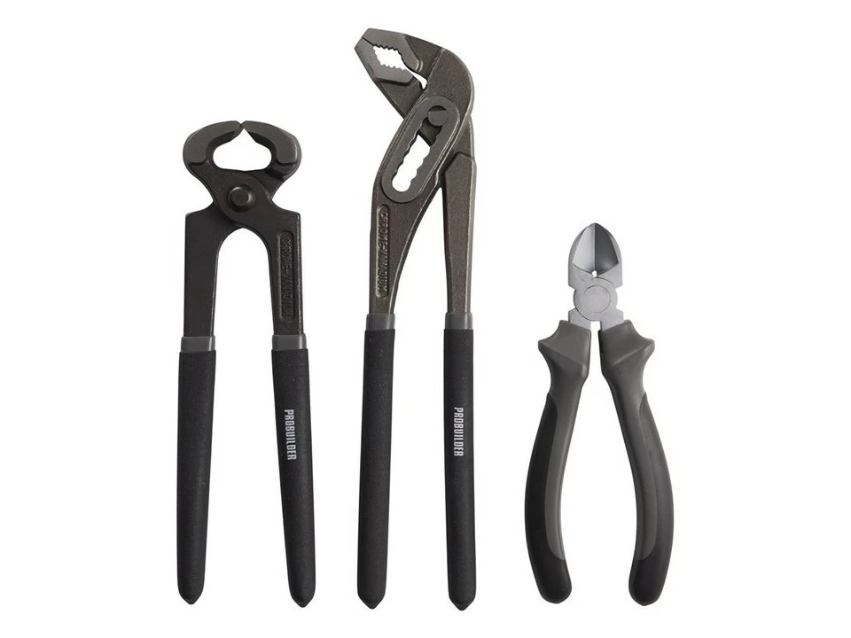 ProBuilder tangsæt med soft grip, bestående af tre tænger – skævbidder, vandpumpetang og knibtang. God kvalitet til hjemmeværkstedet – Kan klare diverse opgaver med cyklen eller andre opgaver i hjemmet.