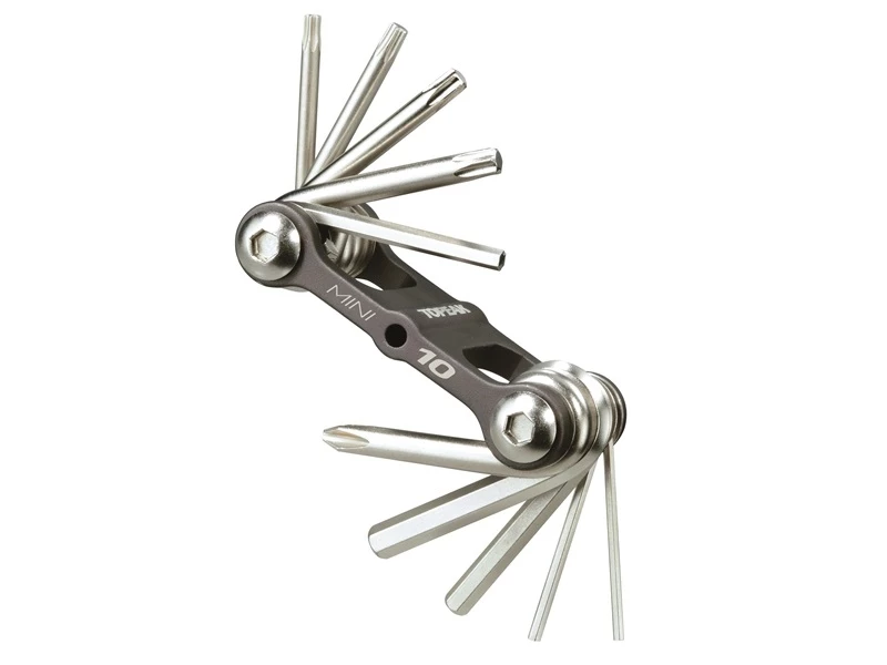Kompakt foldeværktøj med 10 funktioner og en størrelse, der gør det nemt at have med på farten. Multiværktøjet indeholder 5 unbrakonøgler, 4 størrelser Torx samt 1 stjerneskruetrækker.