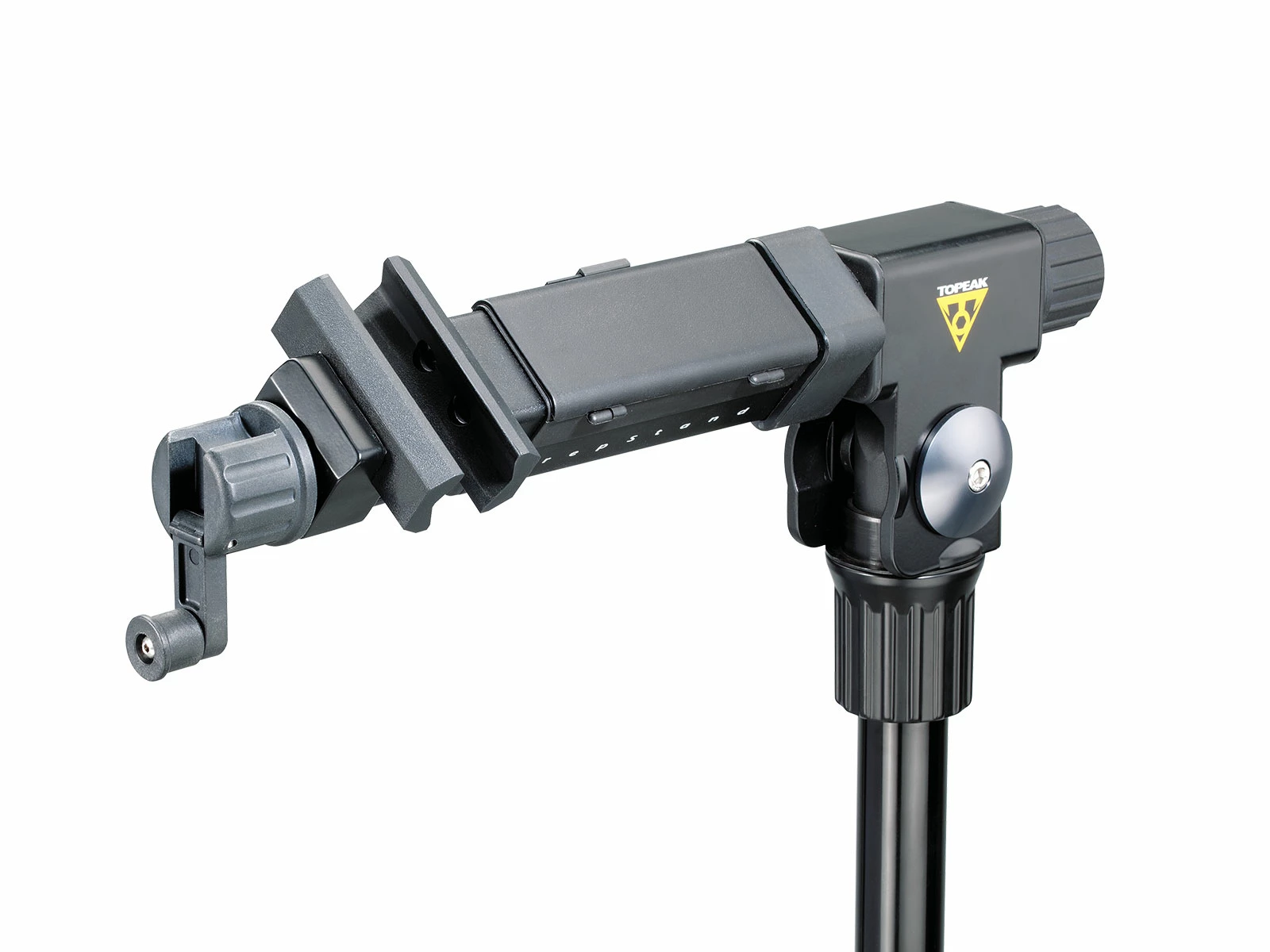 Cykelholderen foldes ud, samles og indstilles til den korrekte højde. Husk at spænde godt til, så stativet står stabilt under hele reparationen. Fastgør herefter cyklen forsvarligt, og indstil armen til den ønskede vinkel.